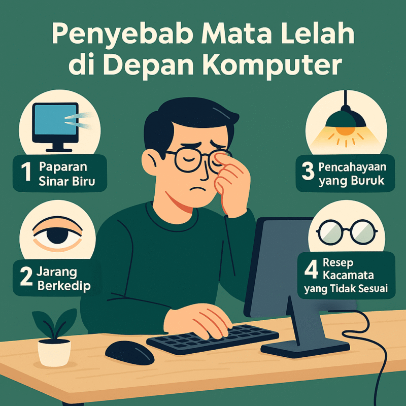 Pekerjaan mengharuskan Anda menatap layar komputer berjam-jam? Wajar jika Anda sering mengalami mata lelah, perih, kering, atau bahkan sakit kepala di sore hari. Kondisi ini dikenal sebagai Digital Eye Strain (DES) atau Computer Vision Syndrome (CVS). Kabar baiknya, kondisi ini bisa dicegah dan diatasi. Mari kenali penyebab mata lelah dan solusinya.
